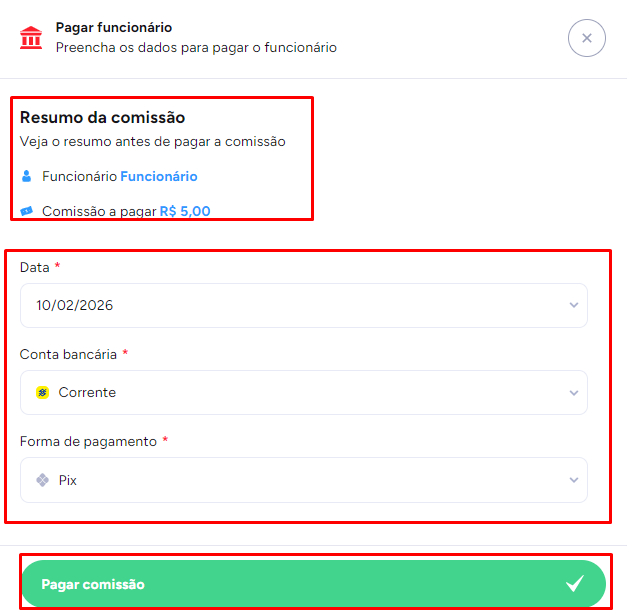 Após conferir as informações, clique em Pagar comissão.