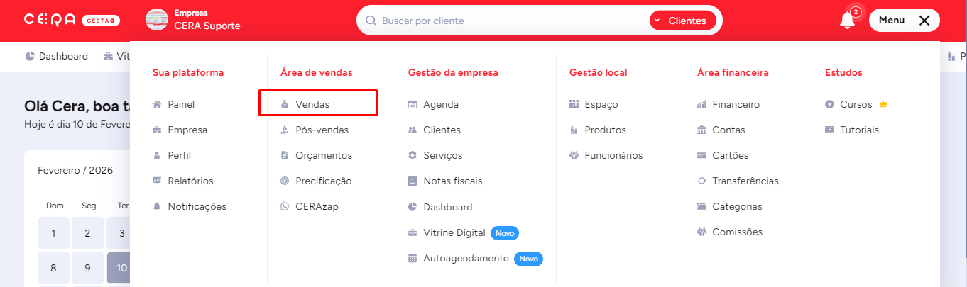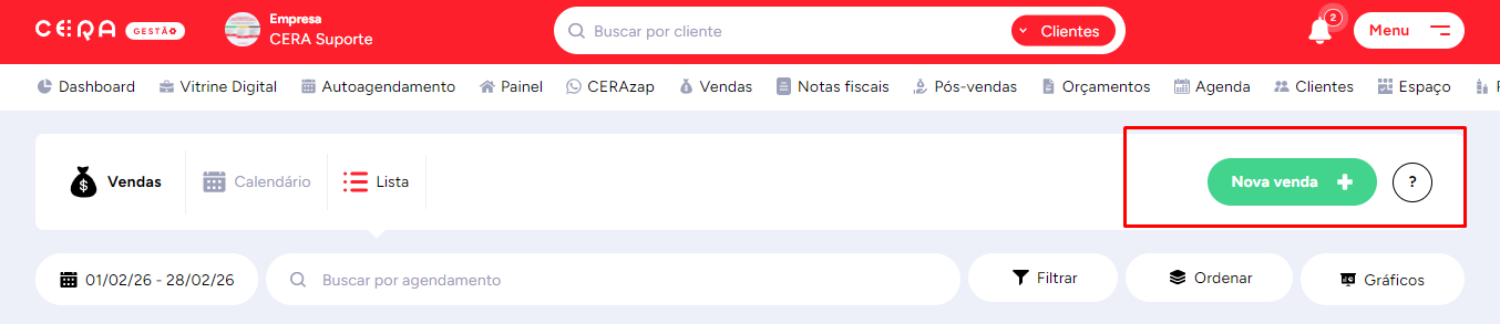 Acesse a tela de VENDAS no sistema.