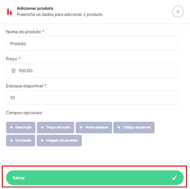 Pronto! Seu produto foi cadastrado com sucesso e já estará disponível para venda no sistema.
