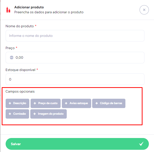 Você pode definir uma comissão específica para esse produto, caso ele gere comissão para funcionários.