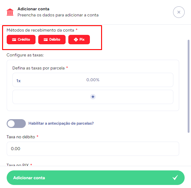 Após conferir se todas as taxas e prazos estão corretos, clique no botão verde Adicionar Conta para concluir o processo.