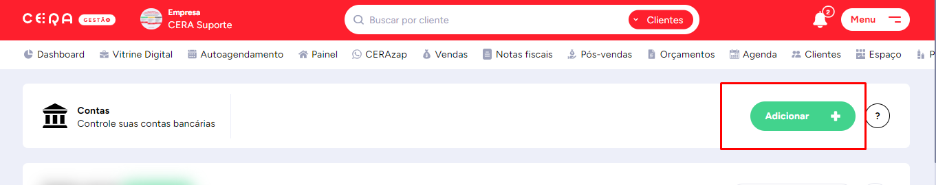 Clique no botão verde + Adicionar, localizado no topo da tela.