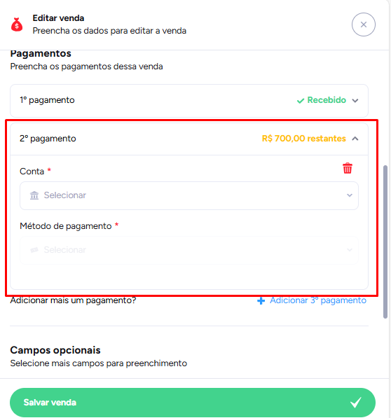 Você pode repetir esse processo quantas vezes forem necessárias, até registrar todos os pagamentos e quitar a venda por completo.