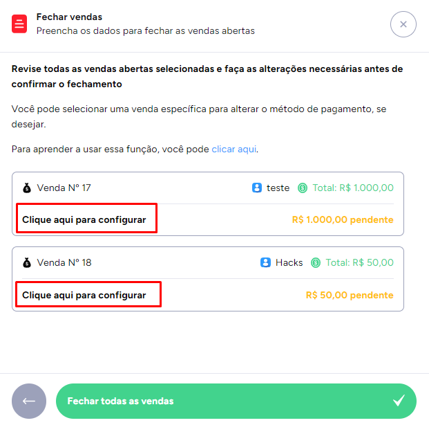 Finalizando: Após preencher cada uma, clique em Fechar todas as vendas.