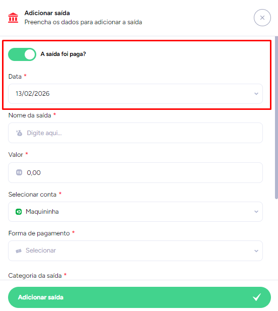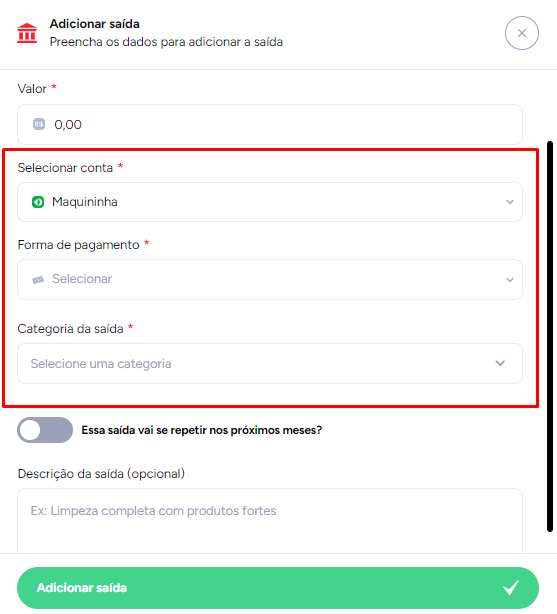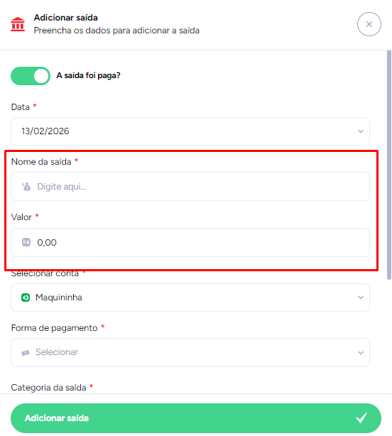 Após conferir tudo, clique no botão verde Adicionar Saída.